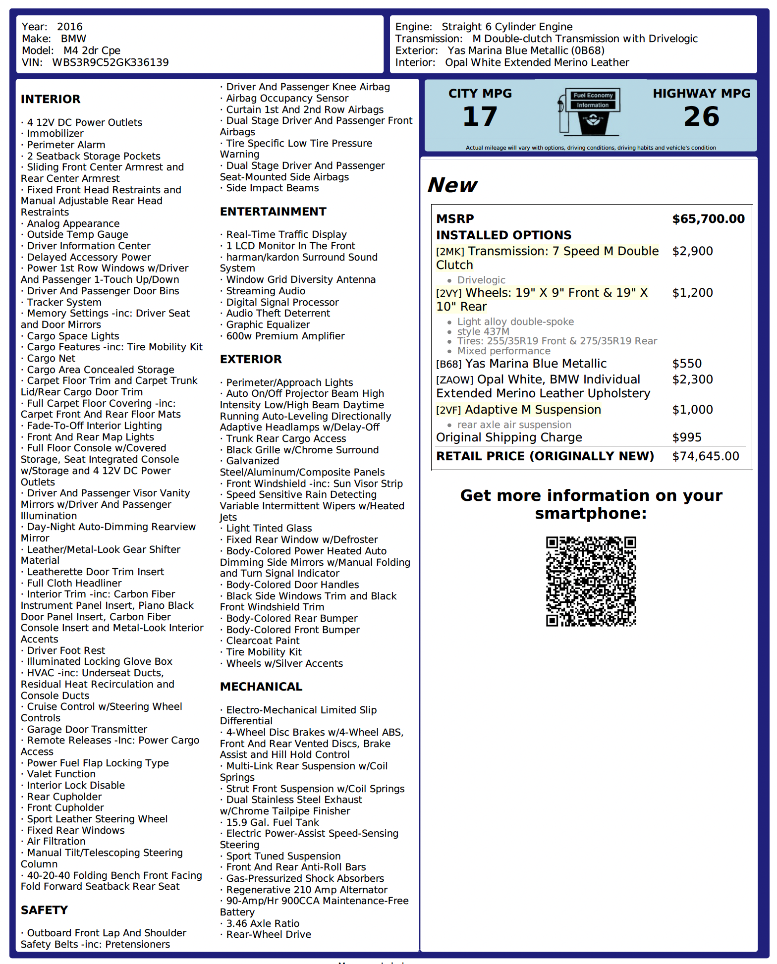 Original MSRP $74,645 (Monroney label shown below)